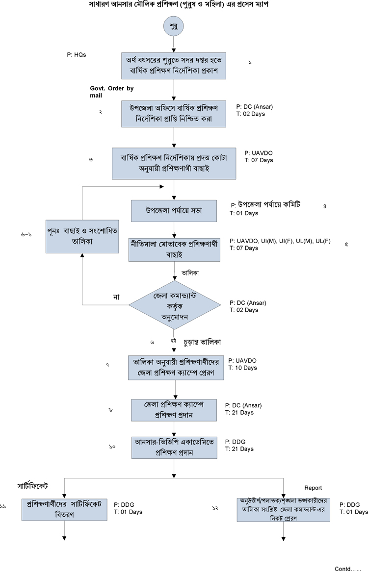 সাধারণ আনসার মৌলিক প্রশিক্ষণ (পুরুষ ও মহিলা) এর প্রসেস ম্যাপ